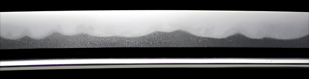 | 説明 | 兼長は長船長義の門人で、現存する在銘作は極めて少ないものですが、同作中に重要美術品認定の貞治五年紀の脇差があり、皆焼風の作柄を示しています。この他に重要刀剣指定の至徳四年、及び特別重要刀剣指定の嘉慶二年紀の各短刀があり、この二振りは前者以上に沸が強く、地刃の働きも豊富で長義の作風に近似しているが、それ以上に相州伝が強調された出来口を示している点が注目されます。 本作は板目鍛えに地沸微塵に厚くつき、地景頻りに入り、淡く乱れ映り立つ。刃文は互の目主調に大互の目・丁子など多種の刃を交えて複雑に乱れ、足・葉頻りに入り、沸よくつき、飛焼・砂流しかかるなど、刃中の働きと変化に富んだ一振りです。 |